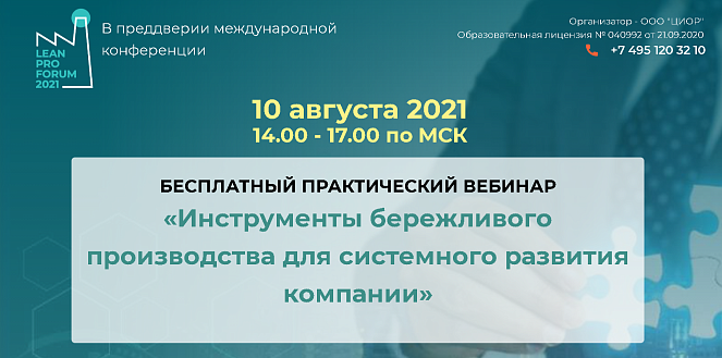 10 августа при поддержке Русской Школы Управления состоится бесплатный практический вебинар «Инструменты бережливого производства для системного развития компании».